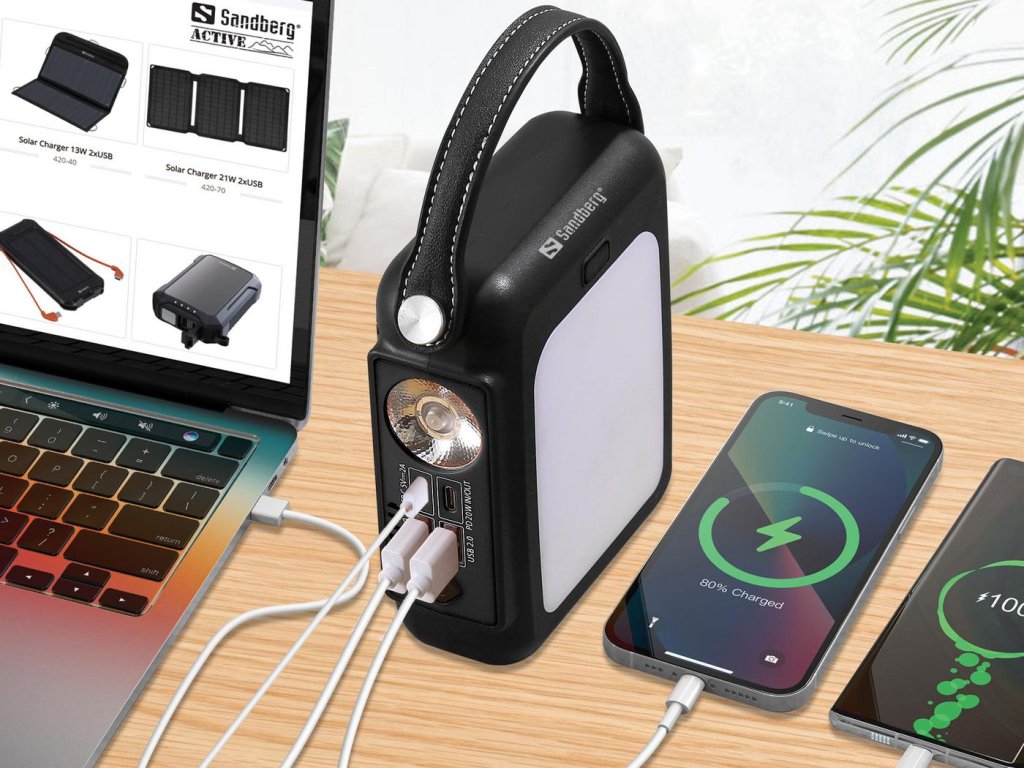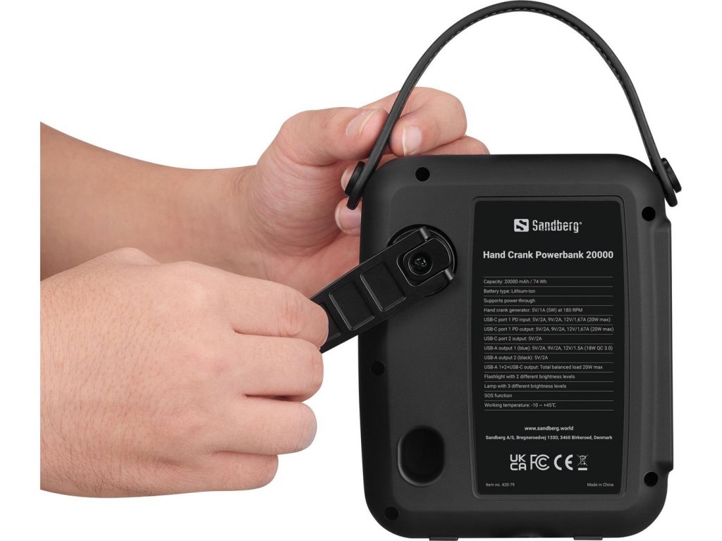 Sandberg Hand Crank Powerbank 20000 mAh vám poskytne velkou kapacitu baterie na cestách pro nabíjení všech vašich mobilních zařízení.