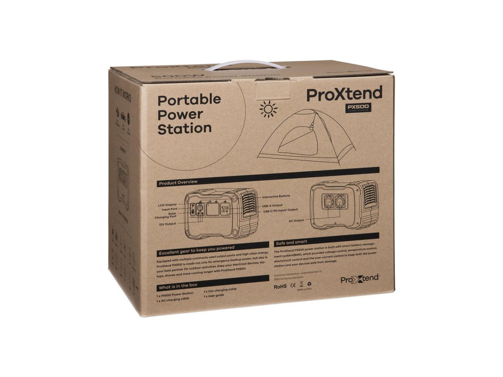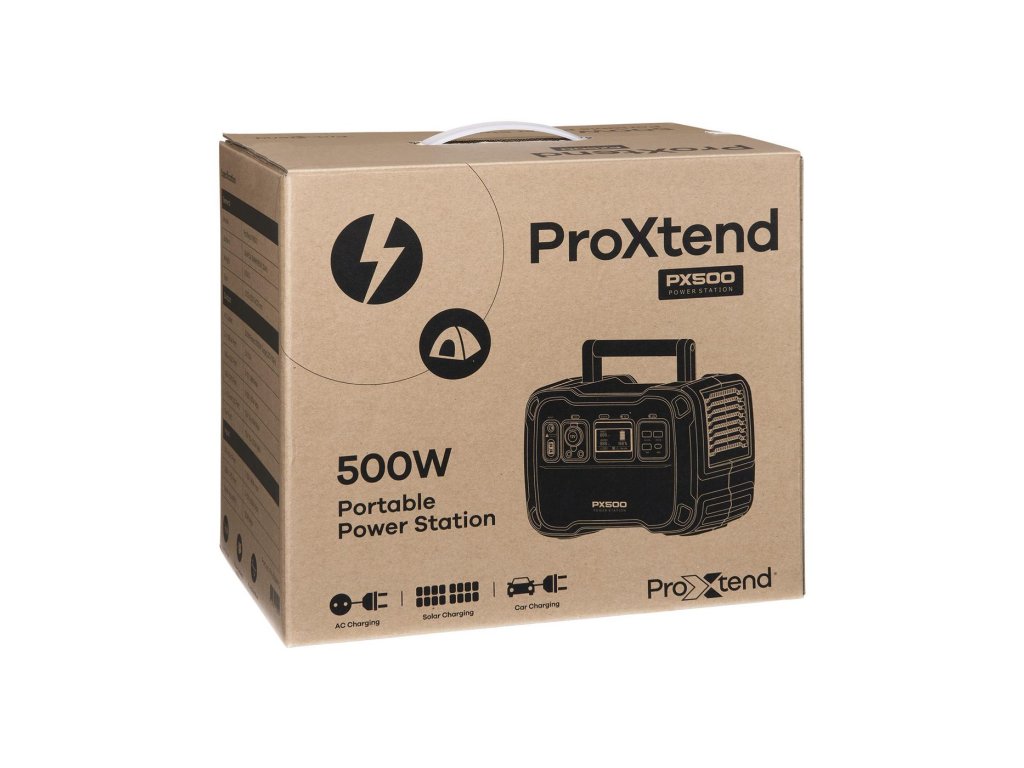 V případě výpadku napájení nebo když jste na cestách, může plně nabitá stanice ProXtend PX500 napájet a nabíjet zařízení současně.