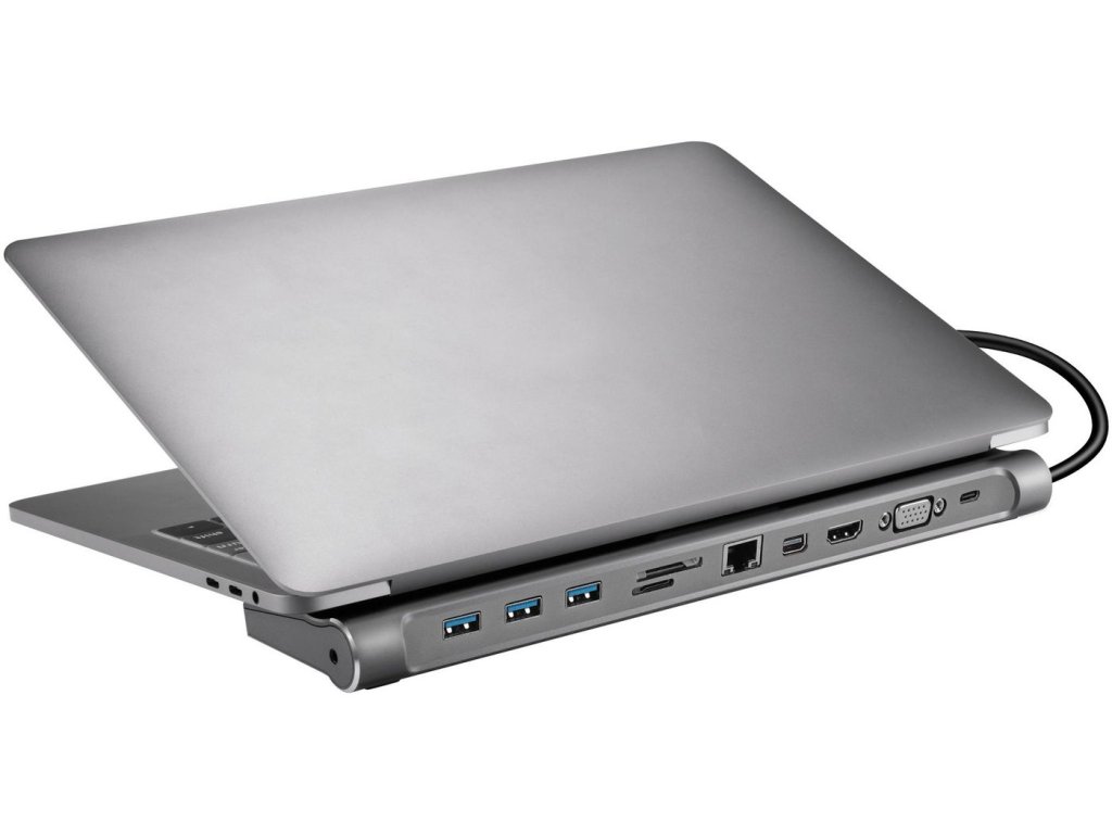 - Dokovací stanice je stylově navržena z hliníku a lze ji použít jako praktický stolní stojan pod váš notebook.