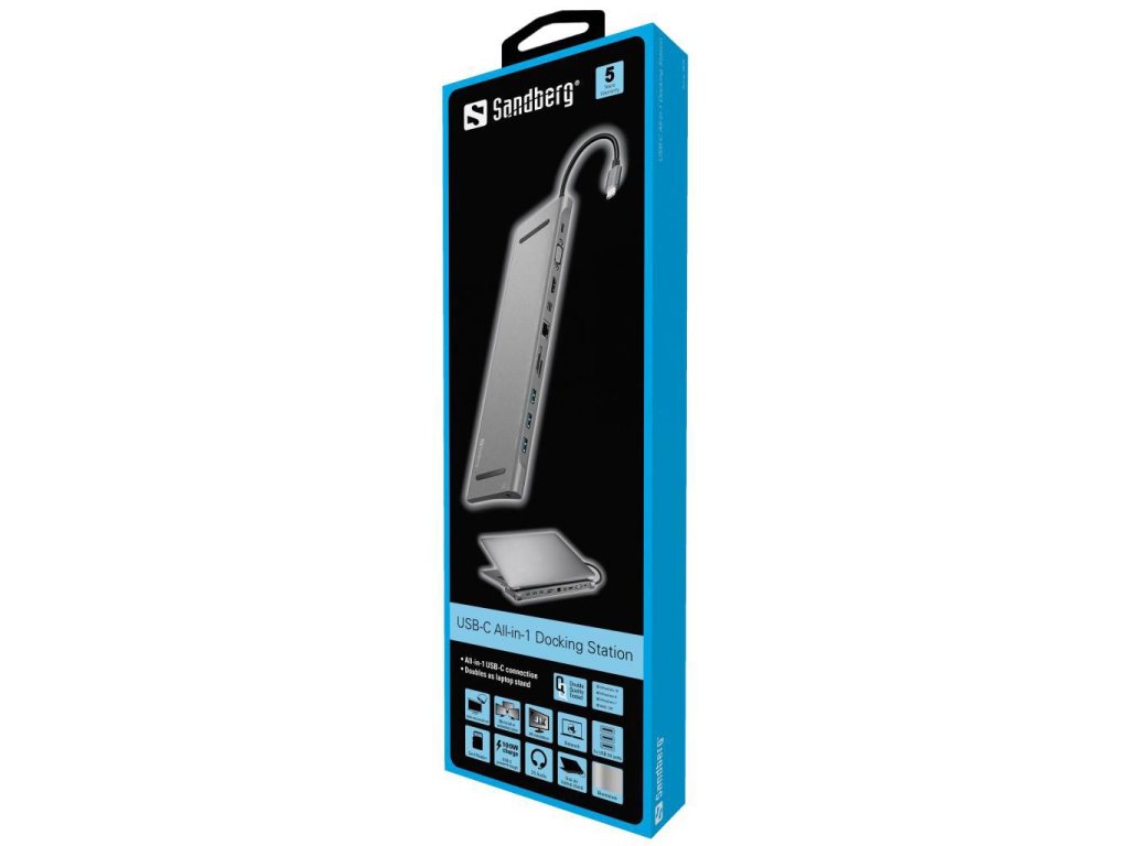 S jediným připojením USB-C k vašemu notebooku Sandberg USB-C All-in-1 Docking Station vám dává možnost připojení veškerého vybavení.